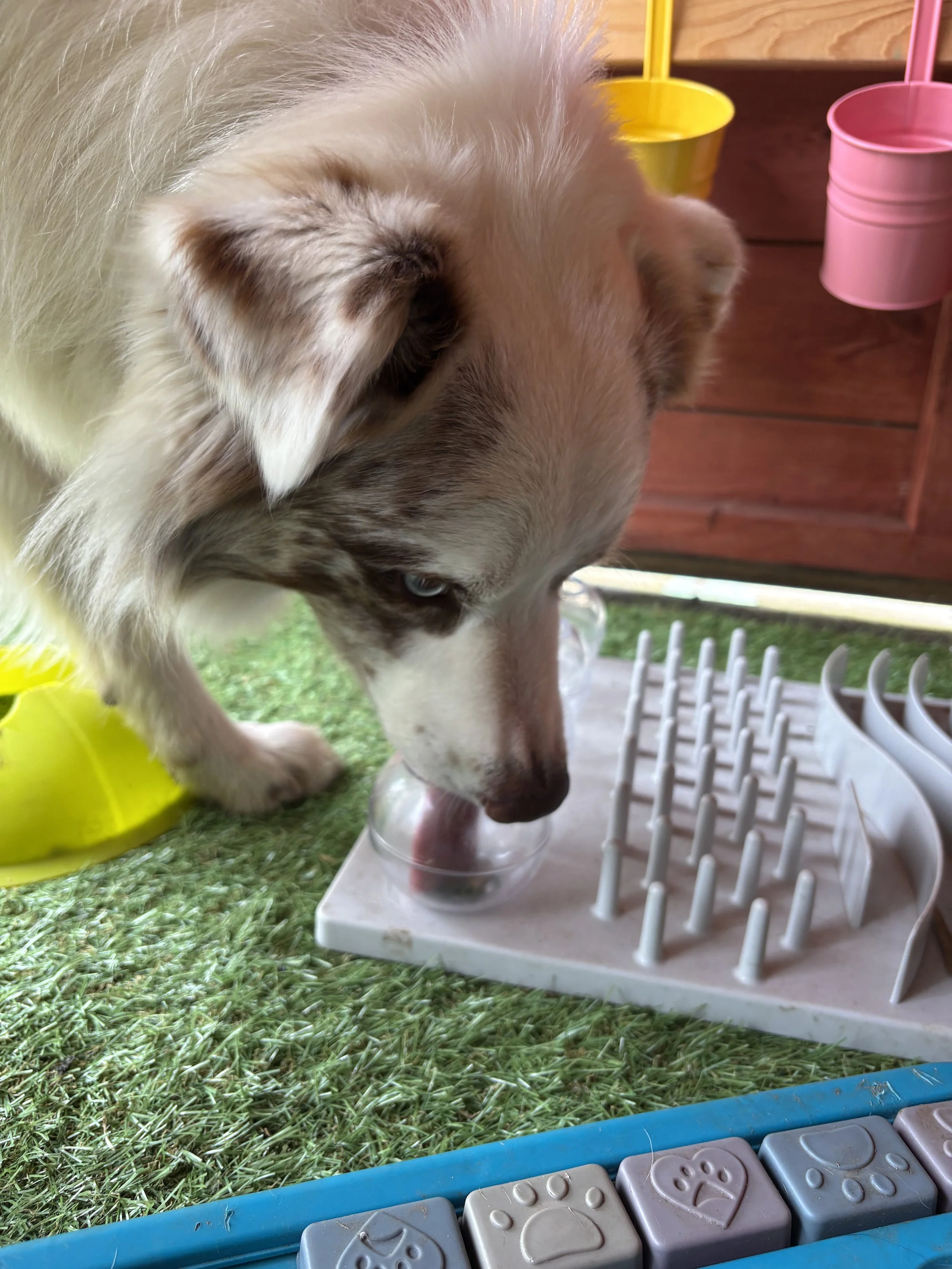 Engaging your dog’s natural instincts in our specially designed scent room! This interactive experience is perfect for mental stimulation and sensory exploration, encouraging your dog to use their nose to solve puzzles and uncover hidden scents.